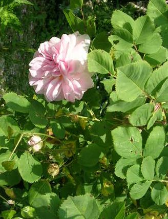 ...ziemlich üppiges laub...sieht so fast nach einer moschata aus, aber ist vermutlich eher eine moderne...wie hoch ist sie denn? wie stark schneidest du sie zurück und blüht sie mehrmals im jahr`?????