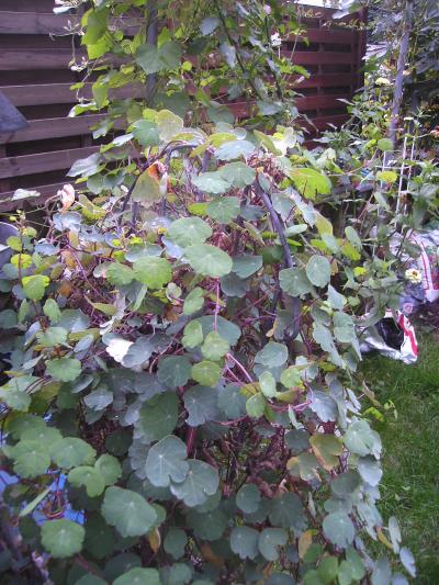 Meine Mashua stehen noch voll im Saft in ihrem Topf. Habe sie an einem Rankgitter hochgezogen.