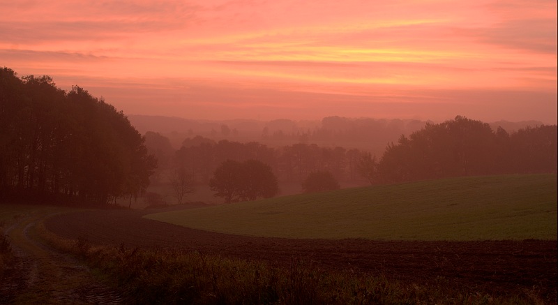@ FaulpelzBild 5, die Rose - ein genialer Schärfeverlauf.Die Perspektive ist spannend, obwohl es ja immer heißt, man soll Blumen nicht von oben ablichten, finde ich es hier sehr angebracht. :)Bild 6,Hortensie - auch sehr interessant, weil es mal etwas anderes ist.@ Gartenlady- bei Deiner Astrantie finde ich, wie bei Faulpelz Rose den Schärfeverlauf sehr schön, der Hintergrund passt für mich farblich sehr gut zum Motiv.Dein Ahorn ist auch wieder so schön gelungen. Mir scheint, ein richtiges Makro sollte ich auch mal auf meine Wunschliste setzen, mit Zwischenringen erreiche ich so etwas mit meinen zomms und Festbrennweiten einfach nicht.@frank, das mittlere ist herrlich... :)Zur Zeit haben wir tolle Sonnenaufgänge, schade, dass die Lichtsituation immer so schnell vorbei ist...Dieses ist von heute morgen, als ich es am Rechner zum ersten mal gesehen habe, war es KOMPLETT ROT- ALLES !Bearbeitet wie folgt:HDR aus 3 Aufnahmen, insgesamt entsättigt,Rottöne im unteren Bereich (Wiese/Weg) zusätzlich entsättigt, etwas Kontrast erhöht und warscheinlich ein Tick zu sehr nachgeschärft.So, und nu´isses echter Heidekitsch