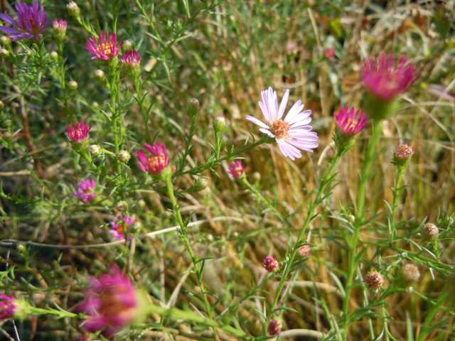 Aster lanceolatus hat solch einen Habitus, sie verwildert hier recht häufig. Die Arten der Gruppe um Aster novi-belgii sind aber nicht leicht zu bestimmen und "erfreuen" dazu noch mit etlichen Hybriden. Ich glaube nicht, dass es sich bei Deiner Pflanze um eine engere novi-belgii -Sorte handelt.Diese hier bekam ich vor vielen Jahren geschenkt mit den Worten: "Das ist ne schöne Blume, die braucht Platz, die macht sich breit, aber die sieht ganz toll aus, wenn sie blüht."Damals wusste ich noch nicht, was es ist. Inzwischen hat sie an zwei Stellen im Garten einen schönen Bestand gebildet. Letztes Jahr wurde ich unglücklicherweise durch eine übereifrige Motorsense um die Blüte gebracht. Dieses Jahr strahlt sie wieder.Vielleicht kann sie jemand identifizieren? Die Bilder sind leider nicht die besten.![]()
