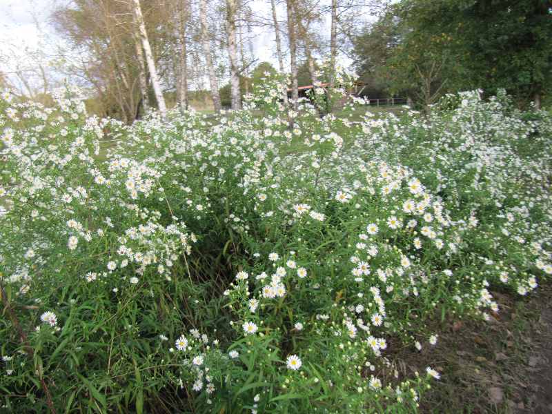 Diesen großen Bestand habe ich vor kurzem am Dahme-Umflut-Kanal kurz vor Märkisch Buchholz gesehen.Aster lanceolatus hat solch einen Habitus, sie verwildert hier recht häufig. Die Arten der Gruppe um Aster novi-belgii sind aber nicht leicht zu bestimmen und "erfreuen" dazu noch mit etlichen Hybriden. Ich glaube nicht, dass es sich bei Deiner Pflanze um eine engere novi-belgii -Sorte handelt.