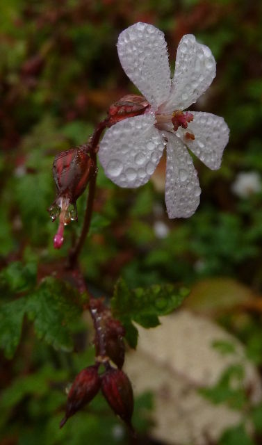 Geranium robertianum 'Album' hat wieder einen Schub blühender Pflanzen geschafft: