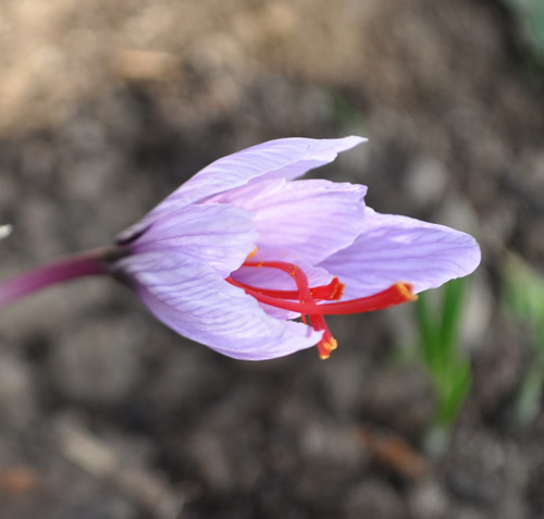 Leider kommt die rote Farbe, die wunderschön leuchtet über den Apparat nicht so richtig zur Geltung. In Wirklichkeit sieht dieser Crocus sativus viel schöner aus: