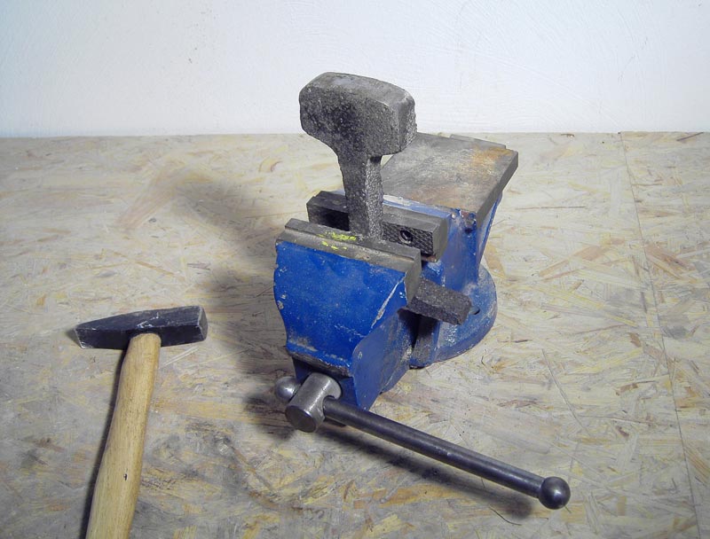 Debil bin ich zwar nicht, Übung brauche ich aber auch. Ist ein erhebendes Gefühl, wenn die Schneide der Sense nach längerem Gedengel auf der ganzen Länge chön charf ist. 8)Dengelhammer und -Amboß kommen teurer als eine Sense. Daher habe ich unten gezeigte Lösung gewählt, die ziemlich gut funktioniert. Es hat aber ein wenig gedauert, bis ich den Kopf ballig gefeilt hatte. Der Stahl ist ziemlich wehrhaft.Dengeln konnten sogar grenzdebile Hilfsknechte - mit etwas Übung.Eine passende Unterlage ist sehr hilfreich, obwohl ichs schon auf einem Schraubstock mit Amboßfläche gesehen hab 8)Dengelhämmer (+ Stöckl) gibts bisweilen im wohlassortierten Hartwarenhandel - suchen.