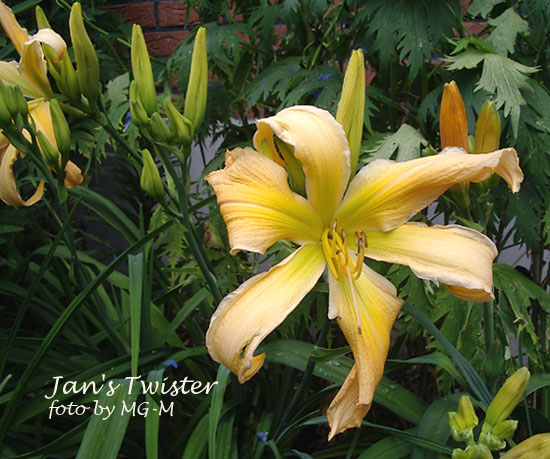 Endlich! Ich glaube, 3 Jahre habe ich auf die Blüten gewartet. Ich habe den Eindruck, Spider zicken gerne ein bischen. Jan's Twister ist zwar etwas mitgenommen vom Regen, aber wie ihr seht, sind noch viele Knospen vorhanden, die bestimmt auch mal besseres Wetter erwischen werden