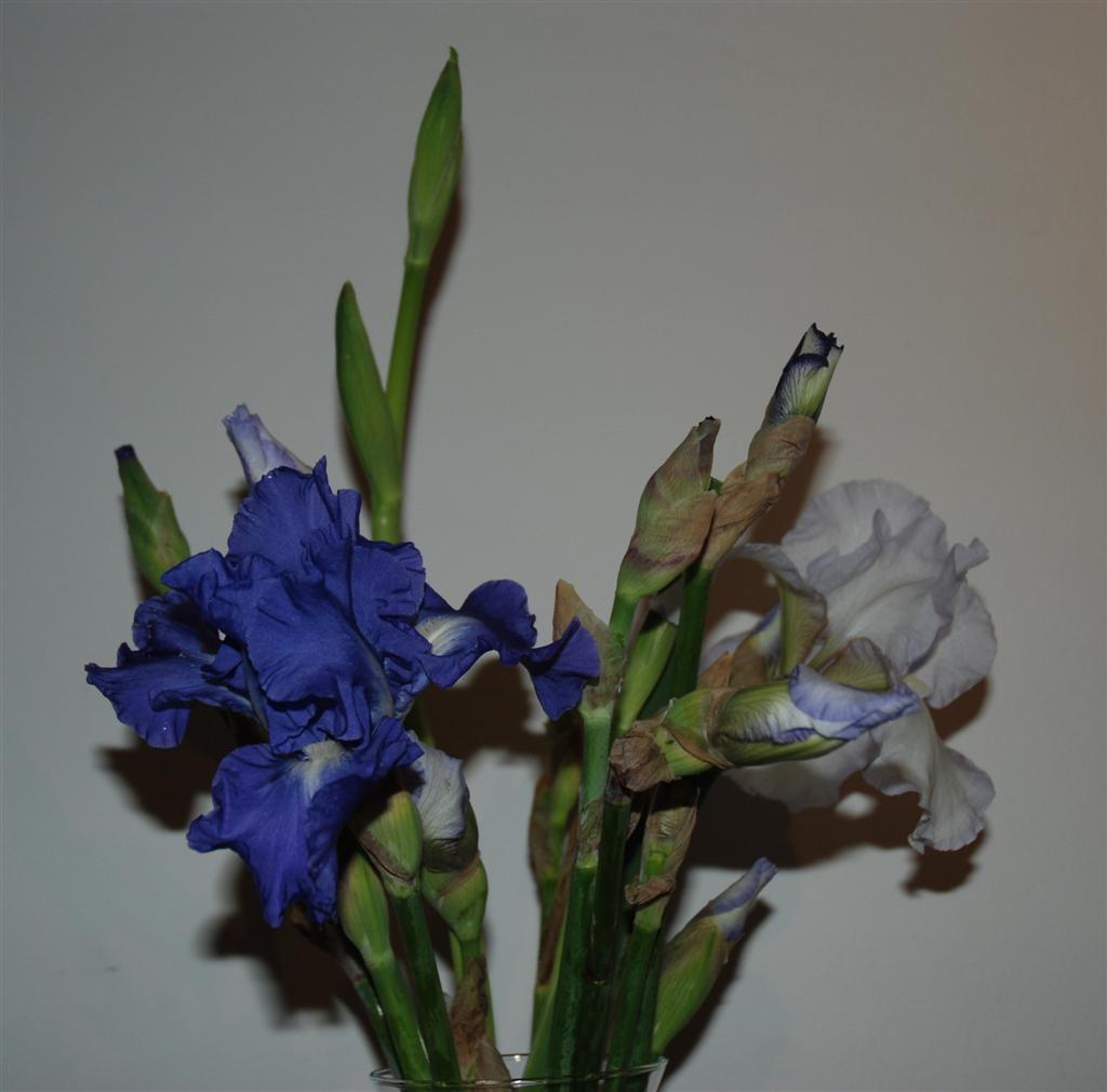 Guten Morgen. Hier geht gerade die Sonne blutrot auf und keine Wolke ist am Himmel, aber es ist bitter kalt, so gegen den Gefrierpunkt. Frost war heute Nacht noch nicht, aber beinahe. Er soll heute Nacht kommen. Darum habe ich alle noch oder beinahe blühenden Irisstängel abgeschnitten. Iris am 12. November, das war noch nie eher gesehen.