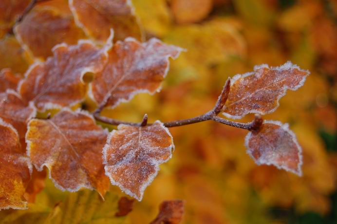 Die Rosen mit Rauhreif gefallen mir gut, und ganz besonders die zweite Reihe. Ist es "The Fairy"?Die Rauhreifimpressionen aus dem BoGa sind gut gelungen, vor allem, weil die Sonne gerade aufgeht, und der Betrachter ahnt, dass ganz schnell alles auftaut.Die Brücke im Nebel passt auch hier gut zum heutigen Tag.