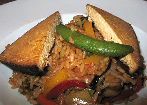 Heute musste es schnell gehen: Asia(TK)-Reispfanne mit gebackenem Tofu