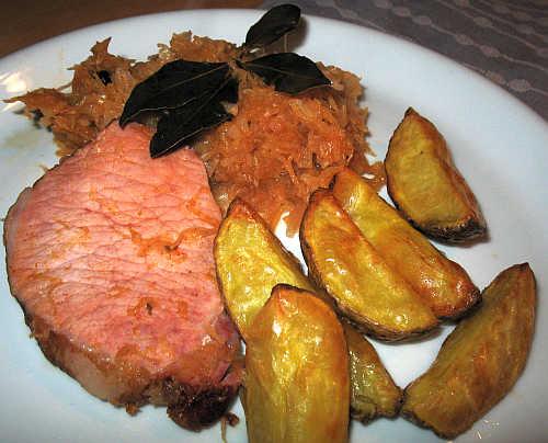 Endlich wieder Sauerkraut! Dazu gab es Ofenkartoffeln und Kassler.