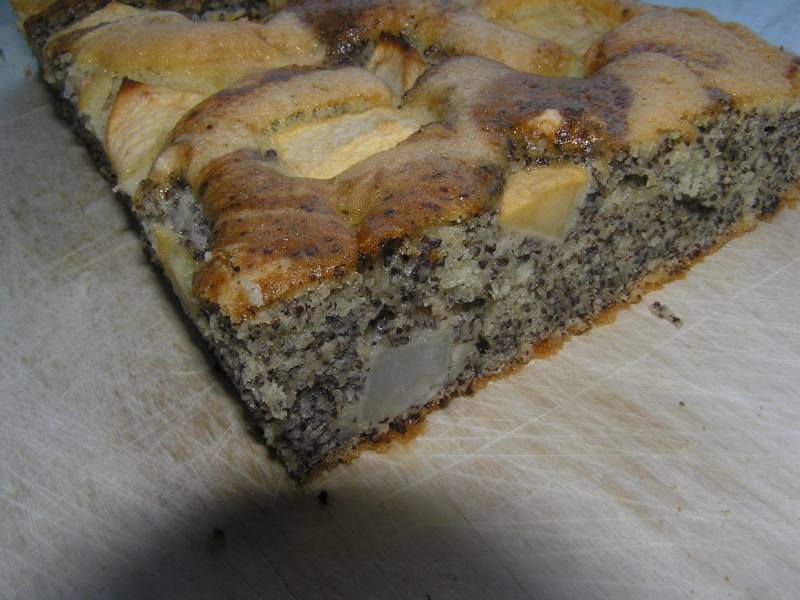 gebacken wurde auch. rührkuchen mit mohn und versunkenen äpfel- und birnenstücken.