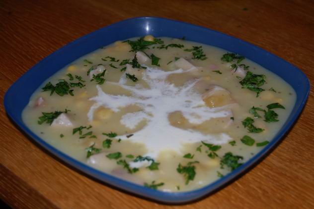 . Aus Kartoffelbrei und Bratwurst wurde mit ein paar Zusätzen eine leckere Kartoffelsuppe.