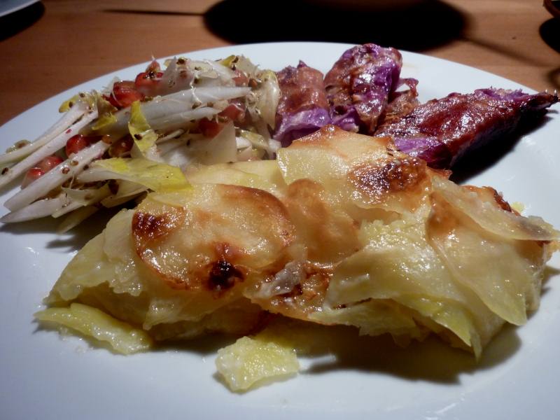 Hier gabs gerade Kohlrouladen mit Parmaschinken und Büffelmozarella. Dazu Chiccorerohkost mit Granatapfel