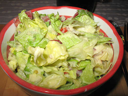 Es musste wieder ganz schnell gehen und es gab Eisbergsalat mit Tomaten und Avocado...