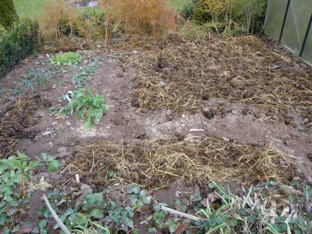 Nachdem der Pferdehalter in meiner Straße meinte, ich könne mir soviel Mist nehmen wie ich will, von ihm aus auch den ganzen Misthaufen......hab ich halt 2 Schubkarren auf den Nutzgarten getan
