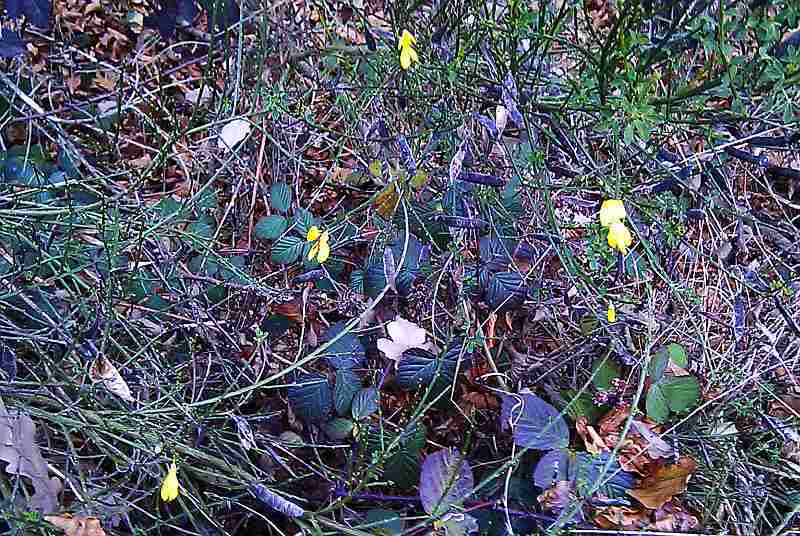 Gestern hats den ganzen Tag ordentlich geblasen und es wollte den ganzen Tag nicht richtig hell werden, am späten Nachmittag gab es dann noch einen Hauch von Sprühregen. Die Weil, an der wir gestern ein langes Stück entlanggefahren sind ist komplett ausgetrocknet, nur noch stellenweise gibt es ein paar Blenken, in den Wasser steht. Unser Bach hier murmelt auch schon lang nicht mehr.Momentan -2°C, absolut wolkenloser, blauer Himmel, Sonne und Rauhreif.Vom gelben Ginsterschmuck zum 1. Advent gestern hab ich auch noch ein kleines, mieses Foto: