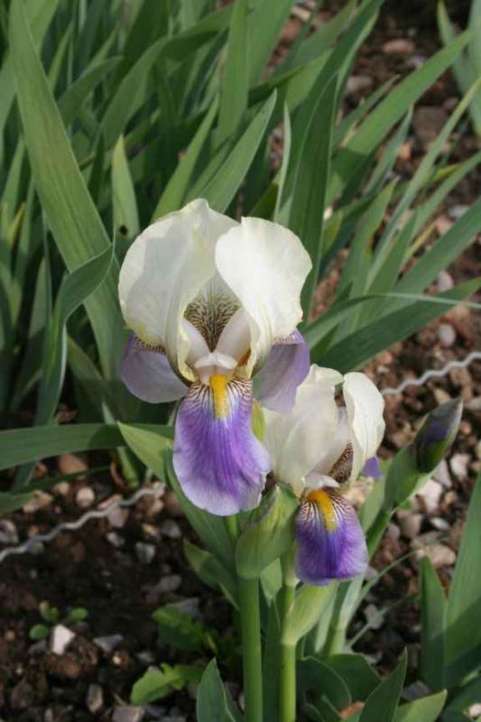 Lieber HenningIch habe mir heute nachträglich den Iris 2011 Thread durchgesehen.So wie es aussieht gibt es keinen anderen Namen für deine Iris.Eine Wildart ist es auch nicht. Ein zufälliger Gartensämling ist unwahrscheinlich, da es offensichtlich eine Hybride zwischen niedrigen und hohen Bartiris ist, die ja nicht zur gleichen Zeit blühen. Bleibt mein Verdacht: „Pfauenfeder“ Hier die Beschreibungen aus den Goos und Koenemann Katalogen:Pfauenfeder (G&K 1928) Neu!Domblätter hellgelb, Hängeblätter violettblau mit hellgelbem Rand, außerordentlich reichblühend und von.ganz niederem Wuchs. (G&K Katalog 1928)40 cm, Domblätter strohgelb, Hängeblätter pflaumenblau. (G&Katalog 1951) (1951 zweimal bei "zweifarbig gelb" und bei "weinrot" eingruppiert) Es ist eigentlich nicht möglich anhand einer Beschreibung Sorten nachzubestimmen wenn nicht typische Charaktermerkmale beschrieben sind.Die G&K- Beschreibung lassen keine sichere Bestimmung zu, aber ich habe heute in meinen Unterlagen gesucht und eine Abschrift aus Schreiner-Katalogen (Größte Irisgärtnerei der USA) gefunden die mich sicher machen.-Schreiner Gruppiert sie als DB-M-La ein (Niedrige Bartiris 20-40cm hoch, blüht als solche mittel bis spät)-Reichblühend, aber nur schwach wachsend, also wenig Zuwachs.-Auch die Beschreibung der Farbe passt genau, wie auch bei G&K (Passt übrigens auch in das Farbspektrum der anderen G&K-Sorten)Ich hab die „Pfauenfeder“ von dir bekommen, und sie verhält sich genau so wie Schreiner sie beschreibt vor allem was selten vorkommt „Reichblühend bei gleichzeitiger langsamer Vermehrung“ Die langsame Vermehrung erklärt dann auch warum nur du sie hast, obwohl es eine alte Deutsche Sorte ist.Also lange „Rede kurzer Sinn“ mit einer Wahrscheinlichkeit von 90% (100% gibt nur wenn man eine Vergleichspflanze hat) heißt deine Iris „Pfauenfeder“ (Quasi das Weihnachtgeschenk für dich und deine Iris)