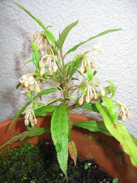 Aus China und soll angeblich ein Seidelbast sein. Daphne weiß nicht mehr. Kam nur als ein kleines Wurzelstückchen an, trieb dann aber wider Erwarten doch aus. Brach durch meine Unachtsamkeit ab, rappelte sich erneut auf (die Chinesen sind ja bekanntlich sehr zäh) und zeigt jetzt die ersten Blüten.Eine Daphne ist das nie und nimmer. Die Seidelbaste haben m.W. nur vierzählige Blütenkronen.Wer kann das wohl sein?(Konfuzius: Wenn du Fremde in deinem Haus aufnimmst, solltest du wenigstens wissen, wie ihr Name ist)