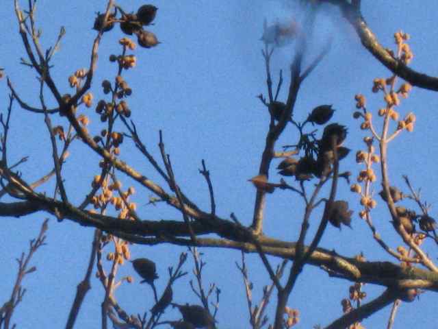 Bristlecone, aber so gross sind ja die Blätter auch nicht mehr bei einem ausgewachsenen Baum, oder? Beim ganz jungen Baum, ja, da waren die Blätter riesig. Ja, das bischen Abfrieren macht doch nichts. Der Baum ist ja noch lange nicht erwachsen. Die brauchen doch etwa 10 Jahre bis sie blühen, oder nicht?Bemerkt habe ich, dass der Hohlgang mit dem Alter der Aeste kleiner wird, dann nimmt auch das Abfrieren ab.Etwa 2 Km weiter entfernt, steht ein älterer Blauglockenbaum. Jeden Frühling steht er prächtig blaubblühend da. Ein herrlicher Anblick. Es gibt hier doch durchaus auch mal gegen 15 Grad Minus im Winter. Meist aber nur bis gegen 12 Grad Minus, was er offenbar problemlos einsteckt.