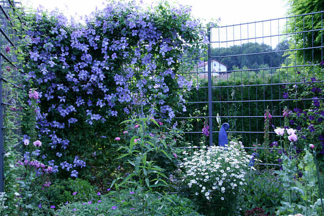- auch eine großblumige Hybride als Riesin erwiesen, nämlich 'Perle d'Azur' - 6 Meter schafft sie locker. Solche Maße bringt hier aber nur diese eine Hybride zustande, alle anderen Sorten bleiben kleiner. Der Boden ist lehmig-tonig, sehr schwer und zäh. Die älteste Pflanze steht bereits seit 11 Jahren, am Zaun, ohne Hauswand-Schutz. Zwei weitere Exemplare sind vor sechs Jahren an anderer Stelle (mitten in der Wiese, frei und windig, noch zäherer Lehm