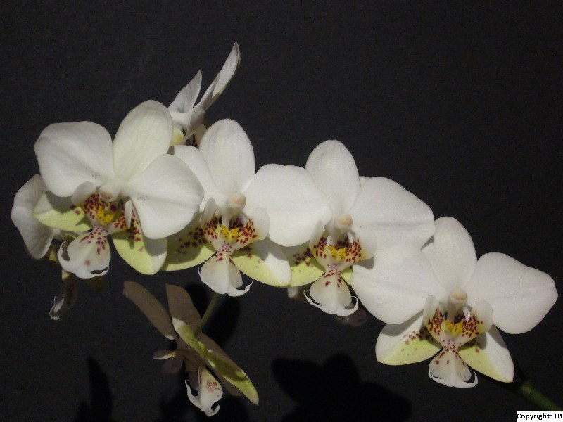 Eine Phalaenopsis-Hybride mit viel Einfluss von P. stuartiana: Brother Pico Chip