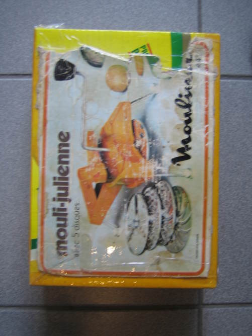 das Glaub ich Nicht! ;DDiesen 'Vogel' haben wir auch noch,auch in diesem 70er_jahre orange,und immer noch ständig in Betrieb,besonders als Parmesan-Reibe,mehrmals in der Woche!Bis vor nem halben Jahr gab es auch noch die Original-verpackung,jetzt etwas verändert,ich mach mal'n Fotobis denneMeine Mutter sagt zu dem teil immer "händische Moulinex"!Also mit der hand betriebenen Moulinex.War wohl doch nicht einfach so dahergesagt, sondern hat ihren Ursprung im Original von Mouli..., Mouli Julienne.Die ich offensichtlich auch besitze.Denn ich benutze es sehr regelmäßig seit nun mehr mind. 15 Jahren!Entsprechend stumpf sind auch die Einsätze die ich öfters benutze. vielleicht hat ja jemand anderes auch so was und das gleiche Problem? :