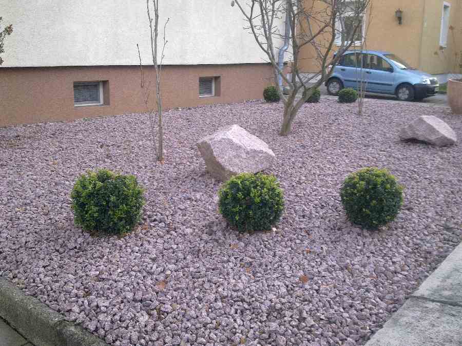 so siehts aus! Hier auch und dann steht noch ne Basaltstele unmotiviert rum.Wie angekündigt, kommen jetzt einige Fotos des Shäng Fui hier in der Nähe.Ich muss demnächst auch mal Fotos des "Shäng Fui" einstellen, an dem ich hier immer mal vorbei komme. Ein Vorgarten großflächig mit grobem rötlichen Porphyrsplitt bestreut und mittendrin mehrere Immergrüne in Pflanzgefäßen mit Palmblattmotiv. Nicht mal als Grab akzeptabel.