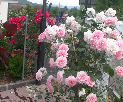Wahnsinn, Dein Phm! so sollte meiner auch die alten Thujen verschönern! Er wächst zwar aber blüht kaum. Wahrscheinlich ist es im doch zu trocken vor den Thujen. Ich werde ihm mal einen dicken Schlauch als Bewässerungstrichter gönnen.Die Birnenrose ist ein nicht identifizierter Multiflorarambler, eher spät blühend, gesund und farbstabil. Vielleicht kennt ihn zufällig wer?@Manu: Die violette ist Rhapsody in Blue, dahinter RdResht.@SusiW: Das Jahr 2011 im Rosenkultivarium muss traumhaft gewesen sein!Jutta