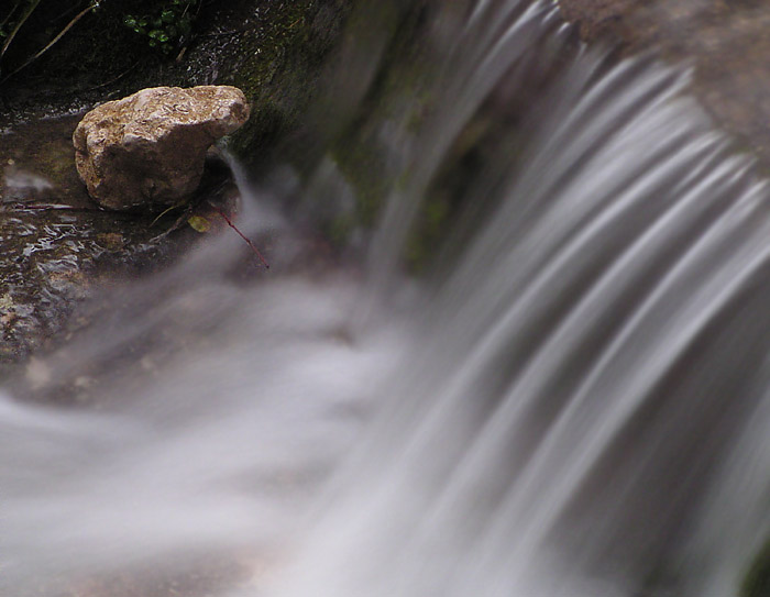 Hmm, da habe ich doch glatt schnell in der Fotoausrüstung meines Vaters gekramt und einen Graufilter und einen Verlaufsfilter gefunden. ich habe sie mit einem Gummiringerl vor die Kamera gehängt und bin mit dem Stativ zum kleinen Wasserfall hinters Haus gegangen.... Offenbar kann ich das jetzt auch *pfeif*