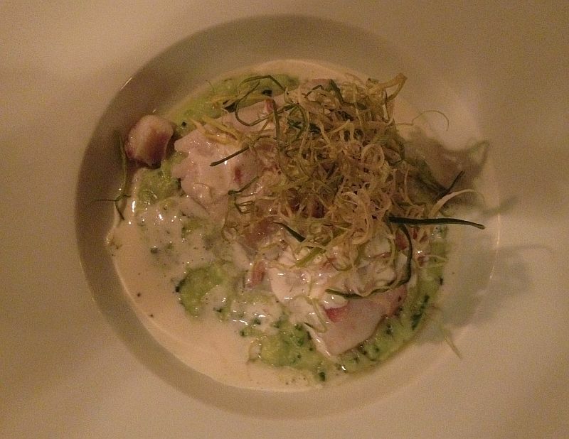 dann pochierter winterkabeljau, apfelschwein, lauch und absolut vodka...