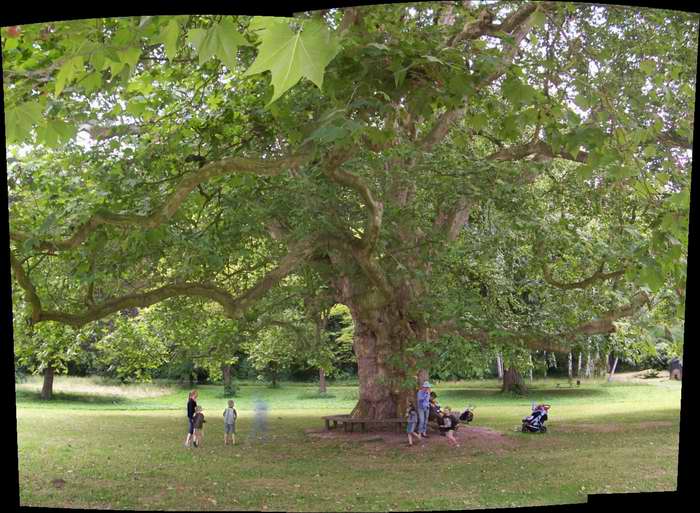 Bilder zusammenpuzzlen ist eine tolle Sache. Hier mal ein Bild einer Platane vom Juni 2008 aus Schulpforta (eine wunderbare urige Anlage). Wie das Programm hieß, kann ich nicht auf Anhieb sagen.Ich finde die Geisterschatten darauf herrlich und die 3D-Wirkung der Äste