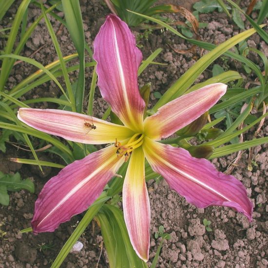 Dieser Sämling stammt von Hans-Ulrich Kaiser. Die Blüte hat eine bemerkenswert dicke Substanz, obwohl es eine diploide Kreuzung ist. Regenwetter macht ihr nichts aus. Eine Superpflanze.