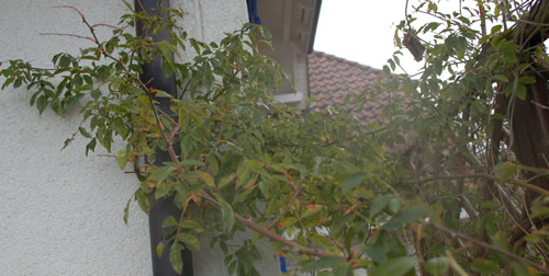 Meine Rosen "spinnen" auch. Die Ingrid Bergmann an der Südwand hat eine Blüte, die sieht allerdings schon etwas gammeliger aus als ihre Prachtblüten im Sommer.