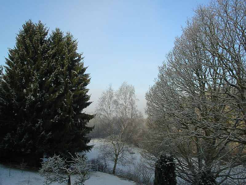 - 4,1 Grad und dicke Suppe. Ich kann nur bis zur Grundstücksgrene blicken - und das ist nicht weit 8)Gestern hat es über Tag wieder etwas getaut, es liegt aber immer noch Schnee. Der Boden ist super aufgeweicht, wenn man über die Wiese läuft hat man das Gefühl man läuft über einen vollgesogenen Schwamm.
