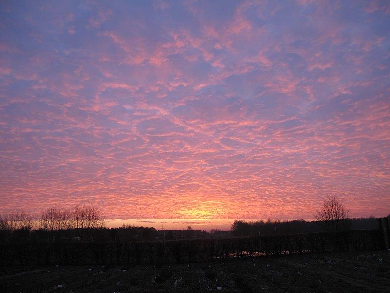 Die Sonne geht unter in Aschaffenburg. Richtung Frankfurt sind die ersten dünnen "richtigen Wolken" der Front aus Westen sichtbar, in der Gegenrichtung hängt schon den ganzen Tag die Hochnebelwand aus Mainfranken an den Spessartbergen fest und kommt nicht mehr westwärtsMomentan plus 2,6Jetzt gehts gleich Richtung Heimat in den Nebel