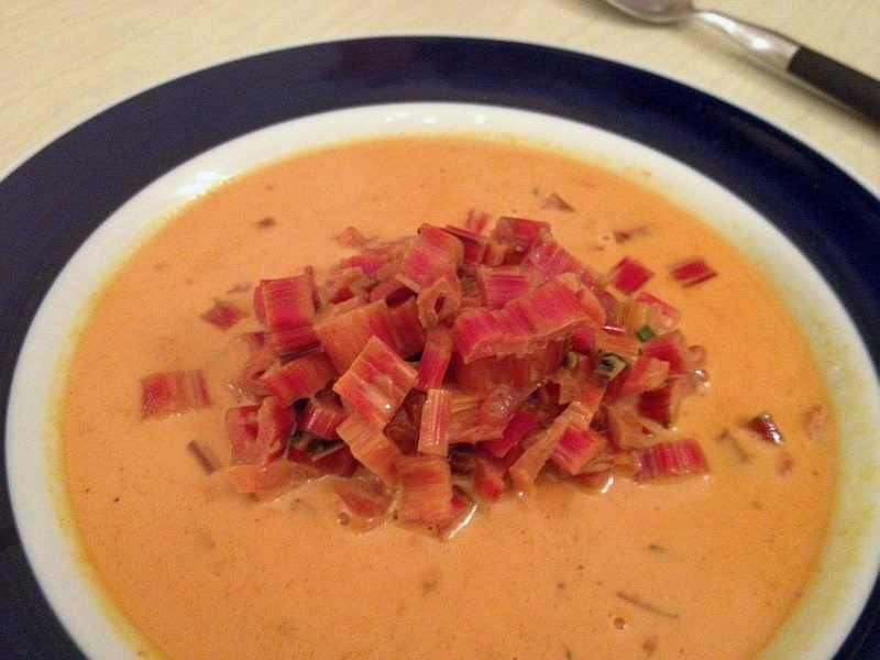 es gab doch was warmes, einen teller mangoldstiel-curry-sahne-suppe
