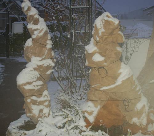 Eina alte Methode ist das einpacken mit viel Stroh und einen Kasten drum. Leider ist das viel in vergessenheit geraten. Kasten braucht nicht unbedingt zu sein, aber ein Lattengerüst und Folie drum. Wenns noch geht Noppenfolie.