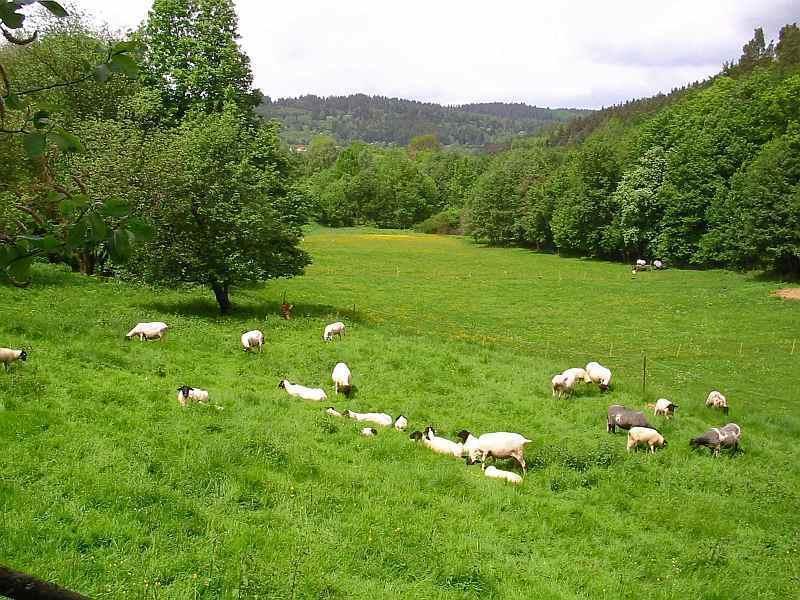 Das Land ist als Ackerland nicht geeignet. Mein Mann betüddelt gerne Tiere, isst aber fast kein FleischAngus-Rinder hat er auch mal ausprobiert für 2 Jahre.Er liebt auch Gänse,wir haben genug Teiche.Das ist aber nichts für den Winter und verschenken will ich die Braten auch nicht.Wir haben einen Teil aufgeforstet, aber es sind trotzdem noch fast 3 Hektar nach.Aber ich okkupier immer mehr.Eine Zutrauliche hatten wir auch meistens dabei, die wollte gekrault werden und Leckerlies haben. Das sind aber meistens Flaschenlämmer gewesenUnd auch die Damen tragen Rangkämpfe aus oder wollen ihr Lamm verteidigen - scharren mit dem Vorderfuß.Ciao AnnePrimrose, warum habt ihr den Schafe gehalten, wenn Wolle und Fleisch gar nicht so eine Rolle gespielt haben, aber das Schlachten schon dazu gehört hat?