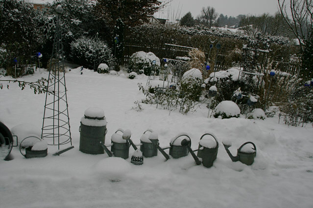 Leise rieselt der Schnee bei minus zwee, in der früh warens noch -5°,noch 5 cm Altschnee und so 1 cm neuen, da ist die Gärtnerseele noch völlig entspannt