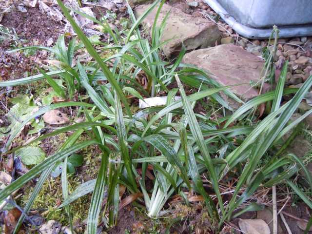 Genausso hier. Steht in ganz lichtem Schatten zwischen Gehölzen, mit etwas Laub an den Füßen. Bisher tadellos grüne und feste Blätter.neben Reineckea sitzt Rohdea japonica an der Nordseite des Hauses. Noch sieht sie gut aus.