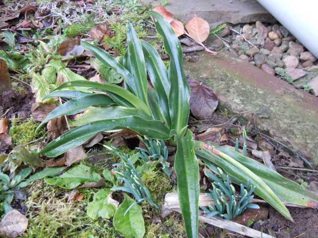 Weichei 2: neben Reineckea sitzt Rohdea japonica an der Nordseite des Hauses. Noch sieht sie gut aus.Übrigens eine sehr interessante Verwandtschaft zur Schusterpalme.
