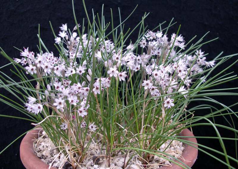 Jetzt blüht das zwergige Allium callimischon var.haemostictum aus Kreta - wegen seiner Winzigkeit gerade recht für den beschränkten Platz im Alpinenhaus.