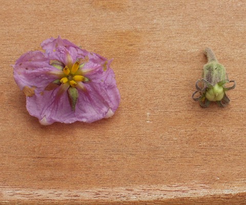 Die rechte Blüte ist noch nicht aufgeblüht.Welche Sorten habt ihr denn so?Ich habe Black Beauty. Da wachsen riesen Früchte dran, aber wenige. Zwei bis max. drei.Dann habe ich vom Markt zwei unbekannte Auberginen. Schwärzlich violett sind die Pflanzen. Sehr früh und reichtragend; dafür sehr kleine Früchte. Vermutlich F1.GrüßeOliver