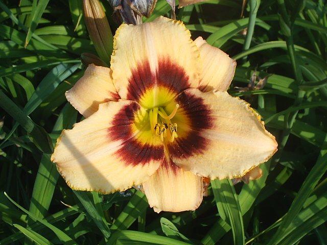Und hier ein Sämling mit ungewöhnlicher Form: eigentlich wollte ich eine "weiße" Form der weit öffnenden Sorte Cartwheels erreichen. (Kreuzung Cartwheels x Iron Gate Glacier). Bisher hatte ich keine solche Form in meiner Sammlung.