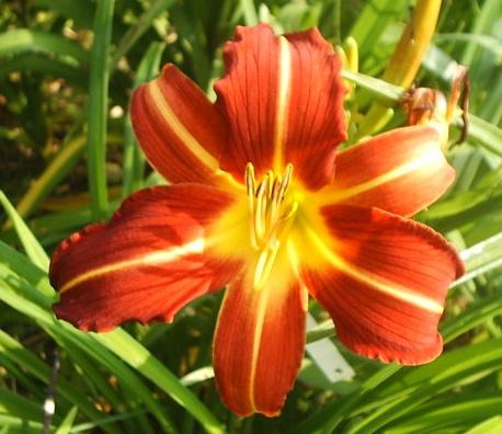 Hier ein Sämling Bumble Bee x August Orange. Die August Orange benütze ich sehr gerne für Kreuzungen, da sie eine sehr reiche Verzweigung des langen Blütenstils hat und sehr lange blüht.