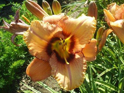 Einen hab' ich doch noch. Einen sehr dunklen Sämling von August Orange x Summer Wine. Der stach aus dem Sämlingsbeet trotz seiner dunklen Farbe richtig raus.