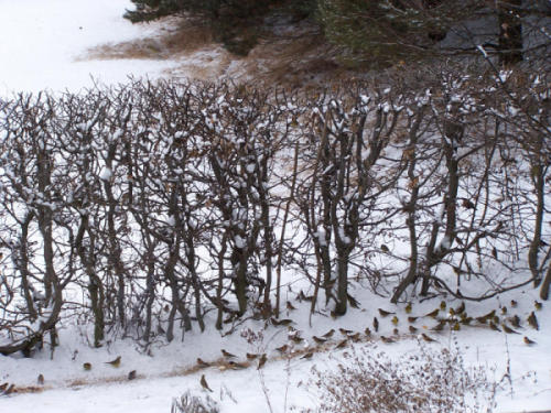 nun entlang der Hecke. Buchfinken würden gar nicht ans Häuschen kommen. Der Bergfinkenschwarm kam aber auch erst nach der ersten großen Kältewelle. Nur 2 waren schon vorher da - die scheinen nach Kärnten ausgewandert zu sein und bleiben das ganze Jahr hier.
