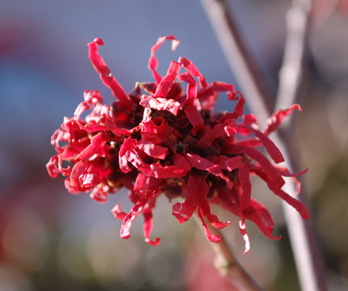 Bei blauem Himmel wars gerade richtig, die Zaubernüsse zu fotographieren.Arnold Promice, schon seit 7 Jahren im Garten. Jedes Jahr zeigt er einen schöneren Blütenschmuck: