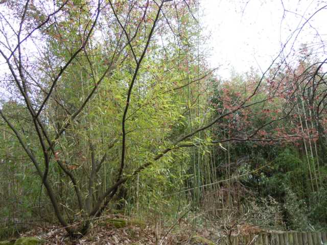 Hier mal ein paar Fotos von meiner Stammgärtnerei mit teils schon sehr alten Pflanzen. Die Gärtnerei wurde in den 60ern angelegt. Viele Pflanzen stehen dort schon so lange rum, unter anderem eine eiffelturmhohe Pinus ponderosa.Hamamelis im Bambuswald. Man muss schon etwas suchen, wo die Pflanze anfängt