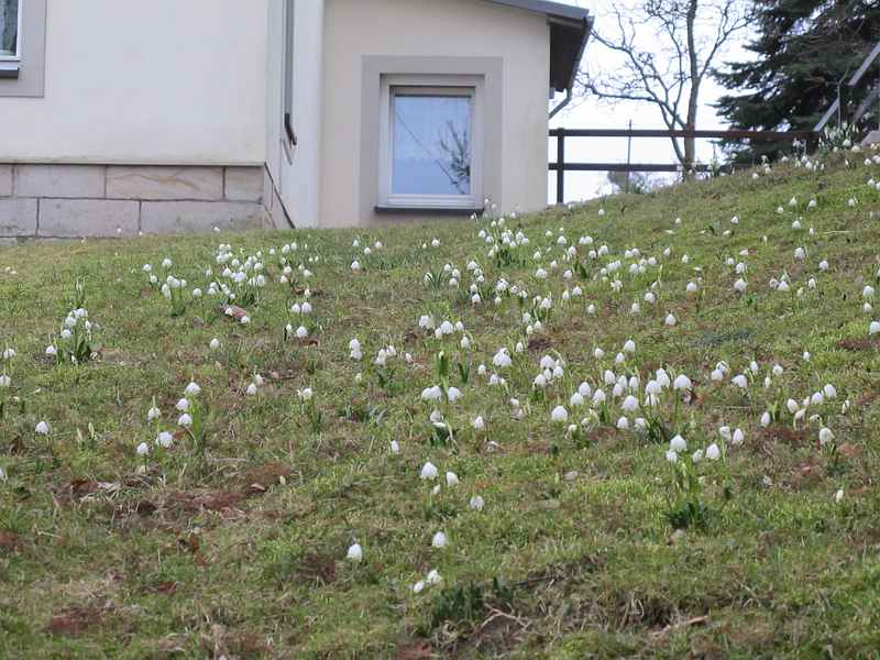 Neben Märzenbechern gibt es in den Dörfern verbreitet Schneeglöckchen.