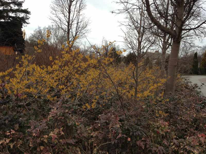 ich habe mir das inzwischen angeschaut: wahrlich eine öffentliche grünanlage - hinter fiesem mahoniengelumpe stehen eng an eng diverse zaubernüsse, da mussten wohl wirklich mal möglichst viele weg, es ist ein wenig traurig... aber, immerhin: im winter gibts ein bisschen was zu sehen... es ließe sich bestimmt geschmackvoller oder wenigstens gärtnerisch-fachlicher inszenieren, aber hey, dit is balin, wa!... das beet werde ich mir auf jeden fall ansehen...... Nun Schaugarten vielleicht nicht, aber da schreiben sie (ziemlich unten auf der Seite):